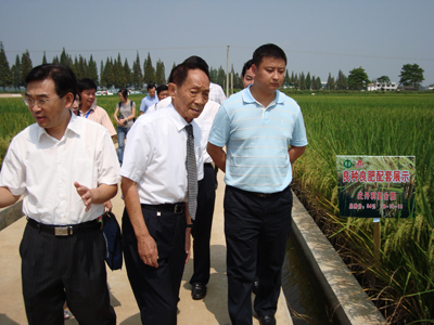 農(nóng)業(yè)部副部長張?zhí)伊值阮I(lǐng)導在雜交水稻之父袁隆平院士、公司總經(jīng)理高進華的陪同下,饒有興趣地參觀了良種良肥推廣示范田,對良種良肥配套給予了充分肯定。由袁隆平院士倡導的良種良肥科學配套,在這里大面積推廣示范。公司作為全國著名肥料企業(yè),參與了袁隆平院士領(lǐng)導的雜交水稻“種三產(chǎn)四”豐產(chǎn)工程,其總養(yǎng)分54%(18-18-18)復合肥作為主要肥種被廣泛使用。史丹利復合肥高產(chǎn)、高效、環(huán)保、經(jīng)濟,優(yōu)勢明顯,受到了參觀領(lǐng)導的高度評價。