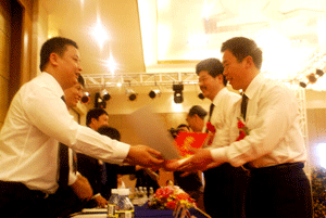 會(huì)上,安徽省安慶市豐樂(lè)農(nóng)資有限責(zé)任公司經(jīng)理汪小鵬、山東省嘉祥縣天成農(nóng)資有限公司經(jīng)理時(shí)玉琢、山西省運(yùn)城市農(nóng)業(yè)生產(chǎn)資料公司經(jīng)理李云峰3位經(jīng)銷商代表介紹了自己2007年的工作經(jīng)驗(yàn)和2008年的打算。會(huì)議進(jìn)行了隆重的頒獎(jiǎng)儀式。