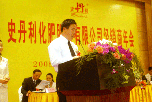 受史丹利公司董事長(zhǎng)和總經(jīng)理的委托,總經(jīng)理助理張磊在會(huì)上作了重要講話。他說(shuō),2007年,公司上下認(rèn)真貫徹科學(xué)發(fā)展觀,實(shí)現(xiàn)了跨越發(fā)展,全年銷售復(fù)合肥130萬(wàn)噸,實(shí)現(xiàn)銷售收入23億元,繼續(xù)保持在全國(guó)同行業(yè)的領(lǐng)先地位;品牌建設(shè)實(shí)現(xiàn)了歷史性進(jìn)步,公司商標(biāo)被國(guó)家工商總局認(rèn)定為中國(guó)馳名商標(biāo),公司被國(guó)家科技部認(rèn)定為國(guó)家重點(diǎn)高新技術(shù)企業(yè),高塔復(fù)合肥被國(guó)家四部委聯(lián)合認(rèn)定為國(guó)家重點(diǎn)新產(chǎn)品,高塔復(fù)合肥項(xiàng)目被國(guó)家列入“十大節(jié)能工程”,國(guó)家財(cái)政無(wú)償扶持資金1000萬(wàn)元已經(jīng)到位;公司六大品牌全部被國(guó)家質(zhì)檢總局認(rèn)定為國(guó)家免檢產(chǎn)品;高塔緩控釋肥和氨化法新型硫酸鉀復(fù)合肥生產(chǎn)技術(shù)分別被國(guó)家科技部列入火炬計(jì)劃和國(guó)家重點(diǎn)新產(chǎn)品計(jì)劃,達(dá)到國(guó)內(nèi)領(lǐng)先水平。